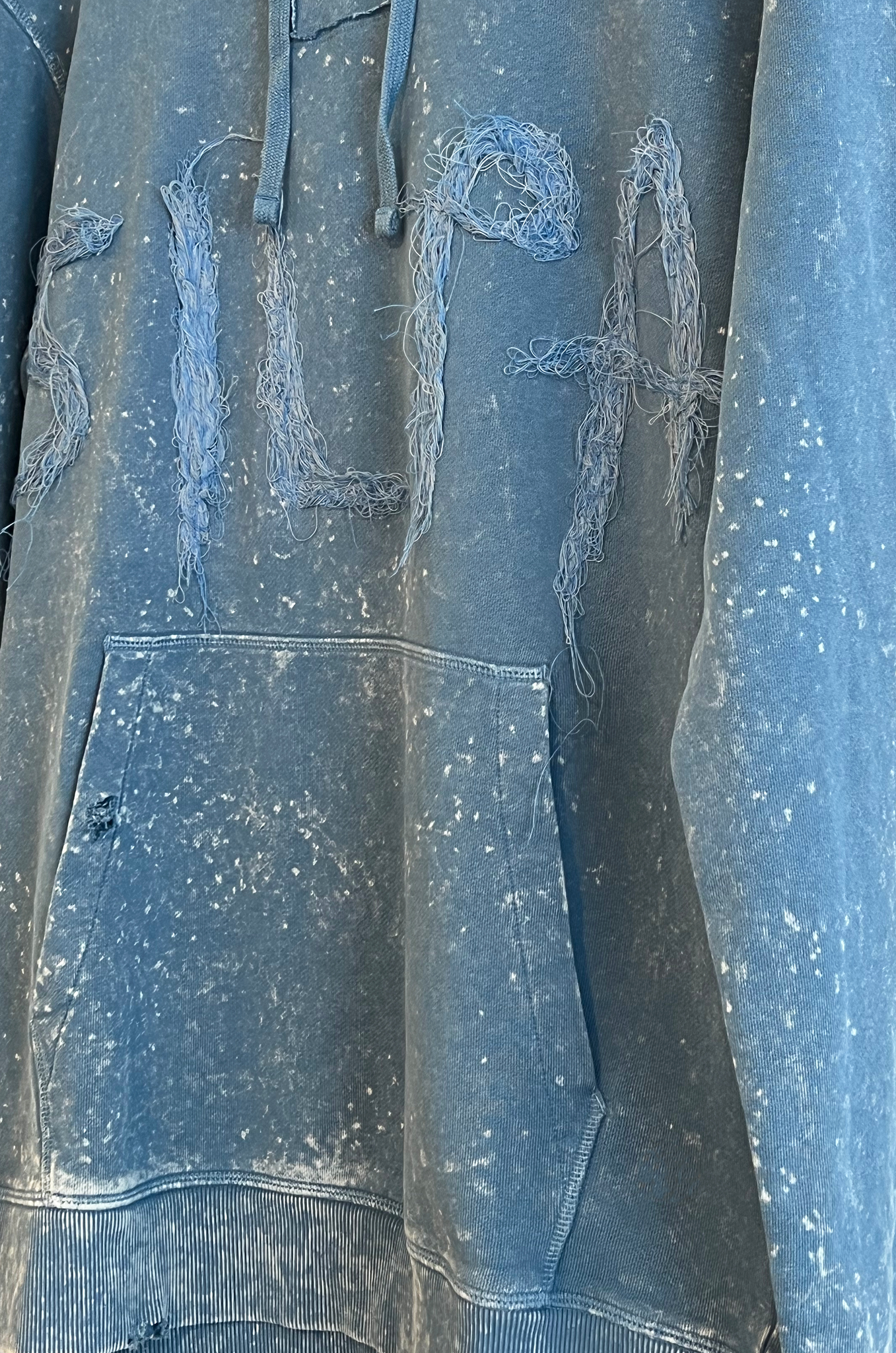The Koswa shuta sweatshirt is made from an organic soft cotton jersey, hand embroidered thread Śilpa, hand finished tie dye effect. distressed individually, giving each pieces its own characteristic.