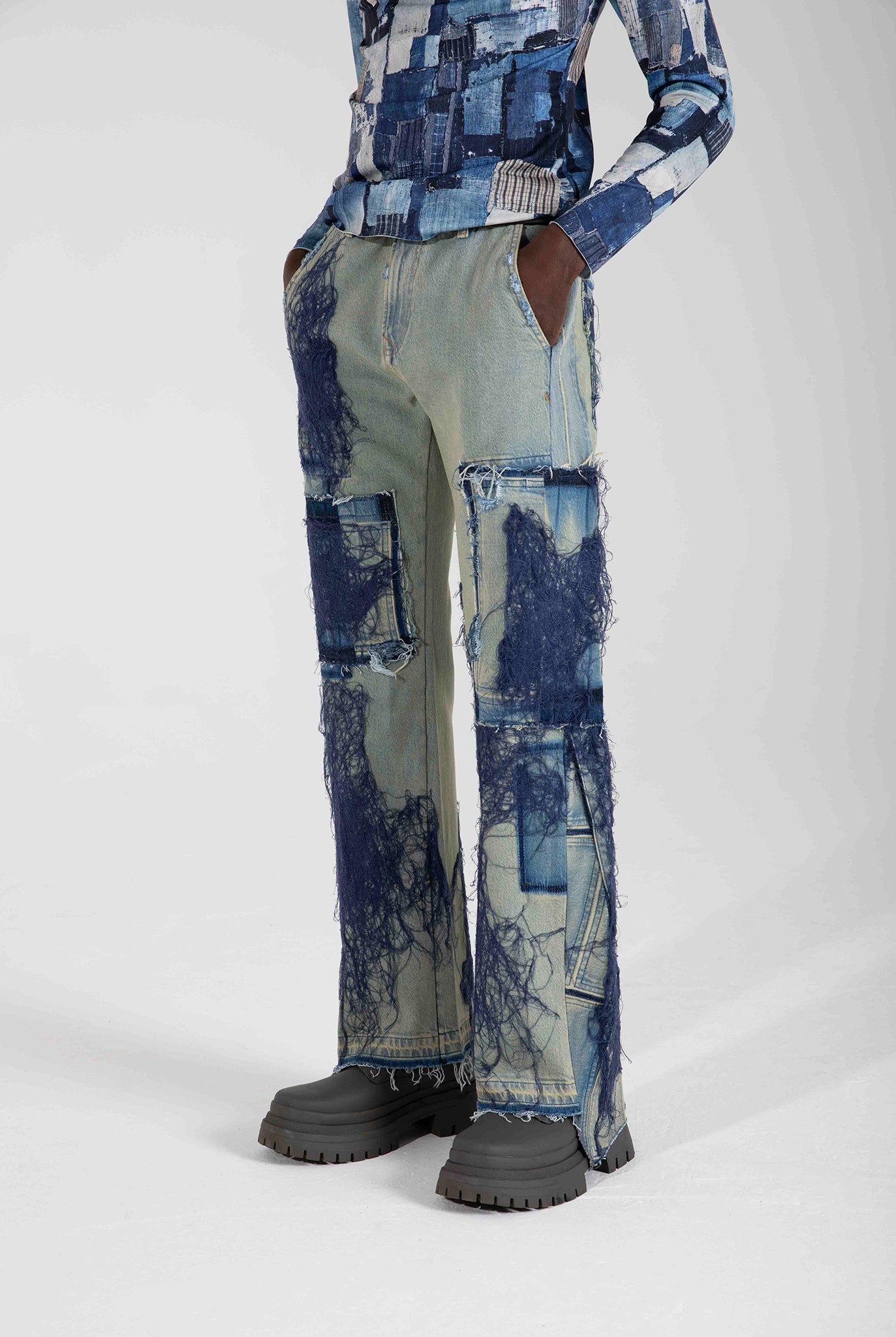 Kholom denim made from up-cycled denim, hand finished thread work individually giving each piece its own characteristics.