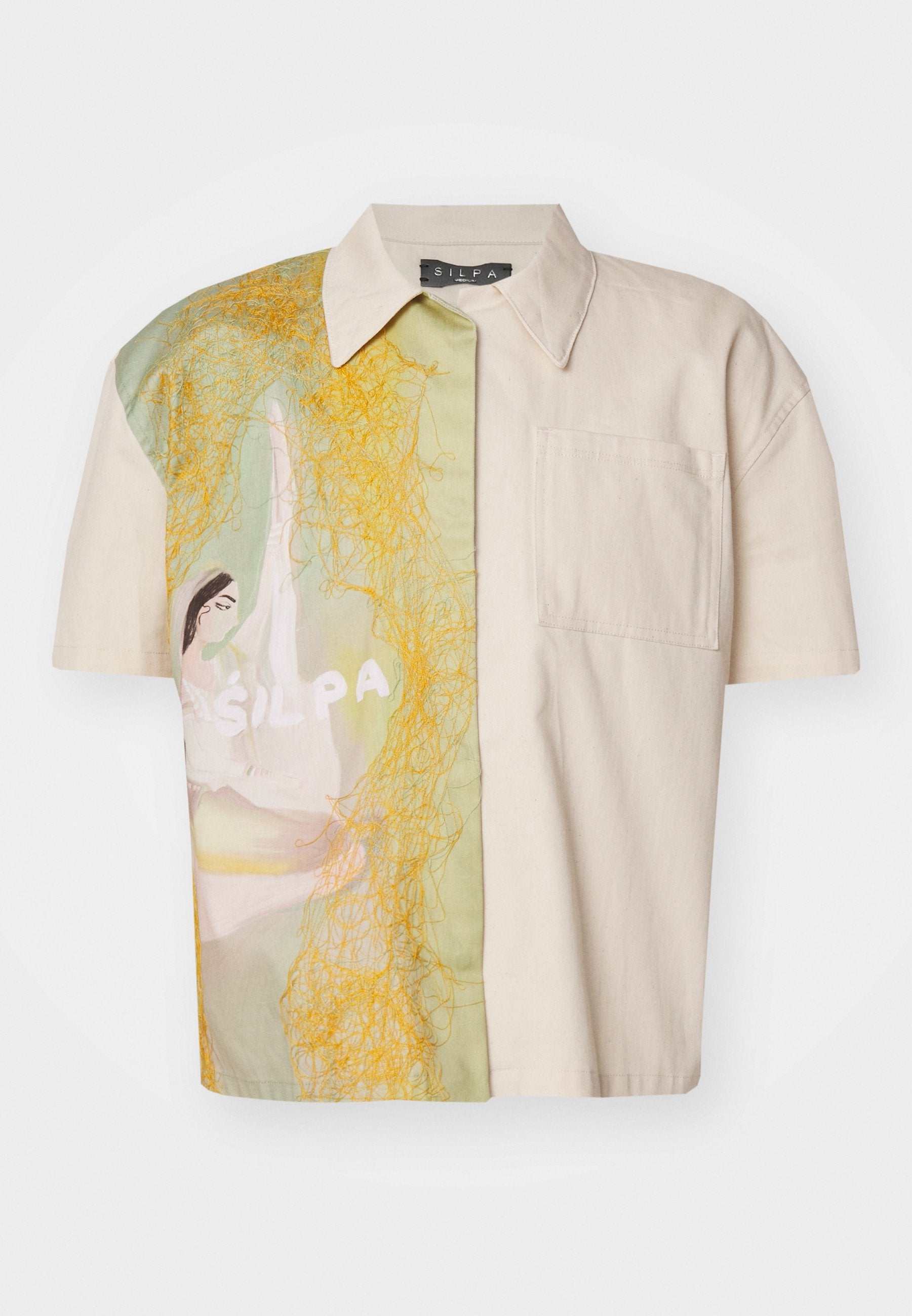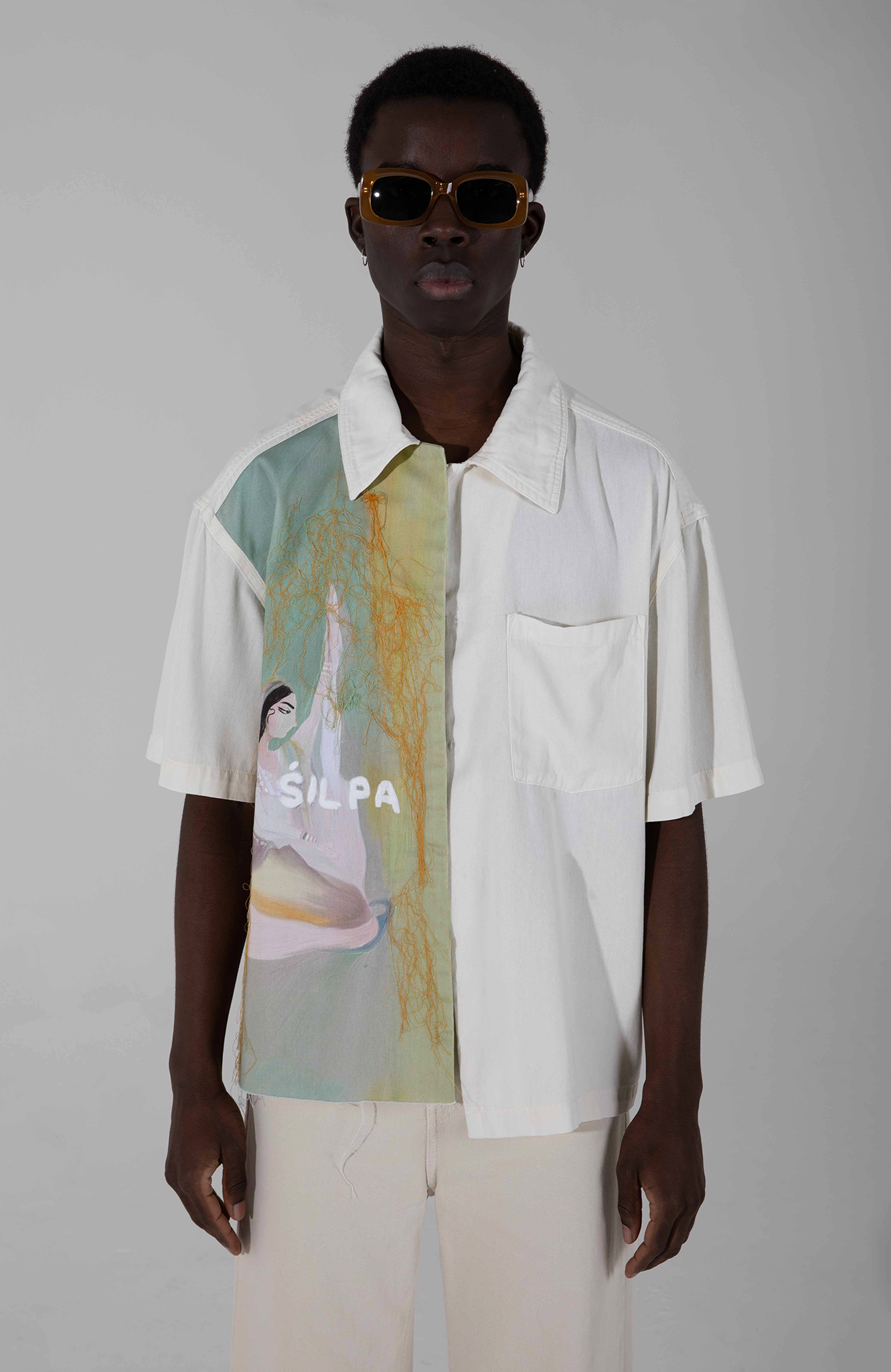 NERA SHIRT crafted of 100% cotton featuring digital prints and appliqué threads; fine quality cotton ensures secure fit and breathability; each piece is unique and timeless.- Boxy fit